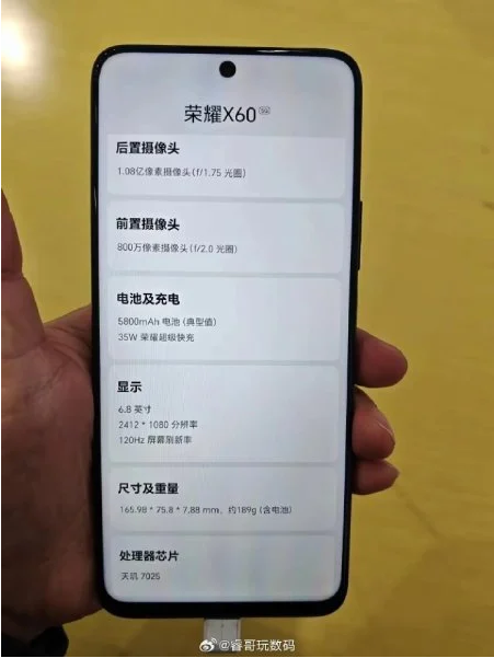 【CNMO科技消息】近日,CNMO注意到,荣耀X60的真机外观和详细配置信息已经被曝光。