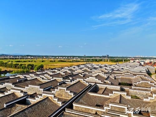 10月7日,航拍南昌市新建区大塘乡境内的清代古建筑群汪山土库,规模浩大的古建筑群与秋天的田野构成一幅美不胜收的画卷,吸引众多游客前来参观打卡。通讯员 袁骏摄
