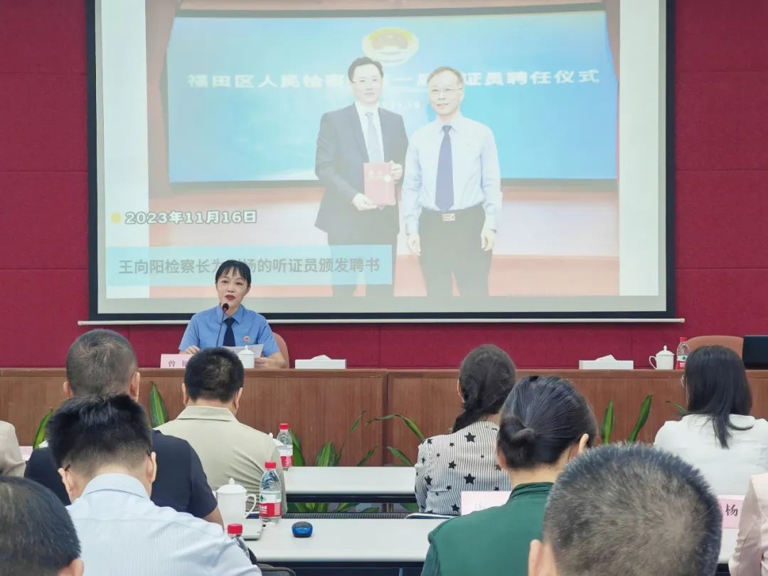 本次培训邀请了深圳市检察院案件管理室检察官肖立昕、南山区粤海街道海珠社区党委副书记王凯授课,我院听证员和负责听证工作的检察人员参与了此次培训。
