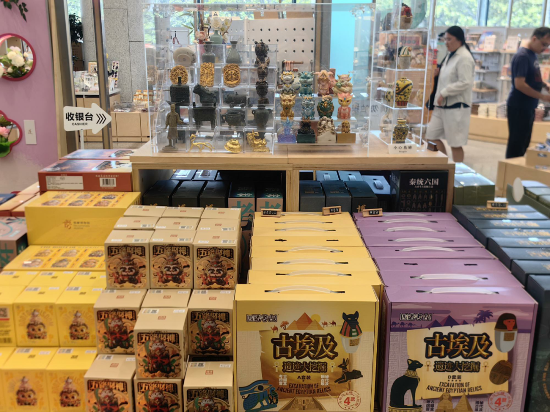此外,配合更替轮换的特展,开发推出特展主题IP的文创商品,如《古埃及展》IP冰箱贴、《千年万念》IP丝巾。东馆1楼还有1家“上海礼物”集合店,精选了“国潮非遗”、“海派美食”、“日用百货”等系列近百个单品,涵盖食品、日用品、文创、香氛、珠宝玉器等各个品类,为爱美一族和爱购女士提供丰富的购物选择。东馆1楼和2楼还有上海博物馆主题餐饮店,销售上博自有IP的咖啡和美食,如大克鼎提拉米苏芝士,提拉米苏芝士的容器是上海博物馆镇馆之宝的大克鼎造型,售价68元。大克鼎提拉米苏芝士1个+咖啡/茶1杯的国宝套餐,售价88元。