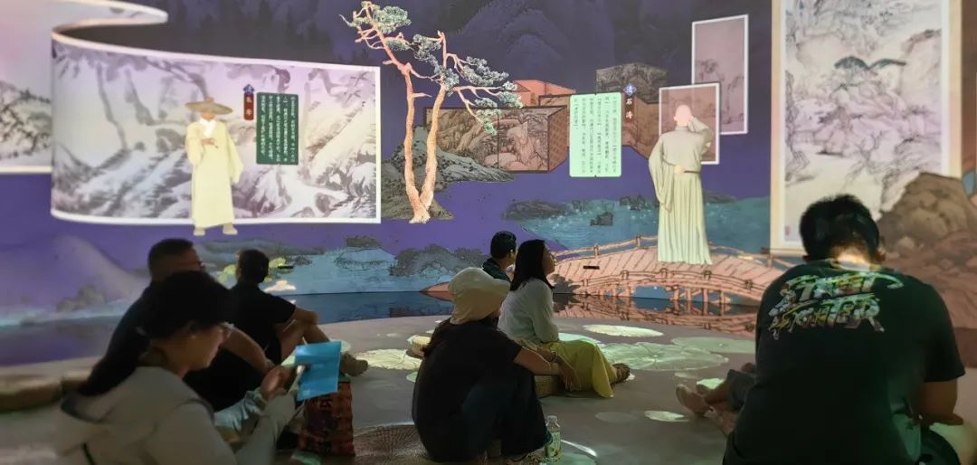 上海博物馆东馆2楼有一个专门的数字馆,通过数字技术把中国古代著名的书画家和书画作品动态地展示出来,所有书画家和书画作品都是“活”的:数字人董其昌向观众介绍中国古代著名的书画作品和书画名家;元代画家赵孟頫的《富春山居图》中,富春江水在微波荡漾,岸边茅屋内文人们正在品茶吟诗,而小孩子们正在嬉笑玩耍。通过数字技术,让历史人物活起来,让静态书画动起来,使得专业小众的书画内容能够被普通大众、特别是小孩子所了解和喜爱。