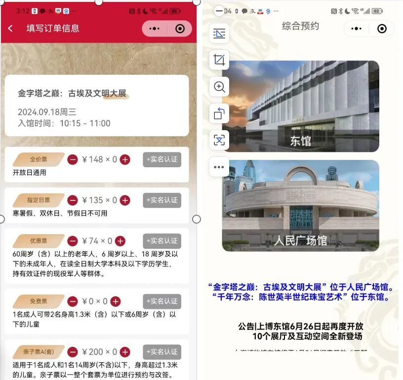 而开馆不久、相对不那么热门的上海博物馆东馆,通过开馆压力测试后,自9月15日起试行散客免预约入馆,观众可持有效身份证原件在入口通过安检后直接刷证入馆,同时,接待容量小的收费特展,依然需要线上预约购票,购票成功后方能参观。