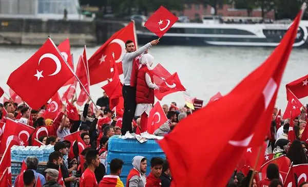 ▲ 挥舞土耳其国旗的在德土耳其人