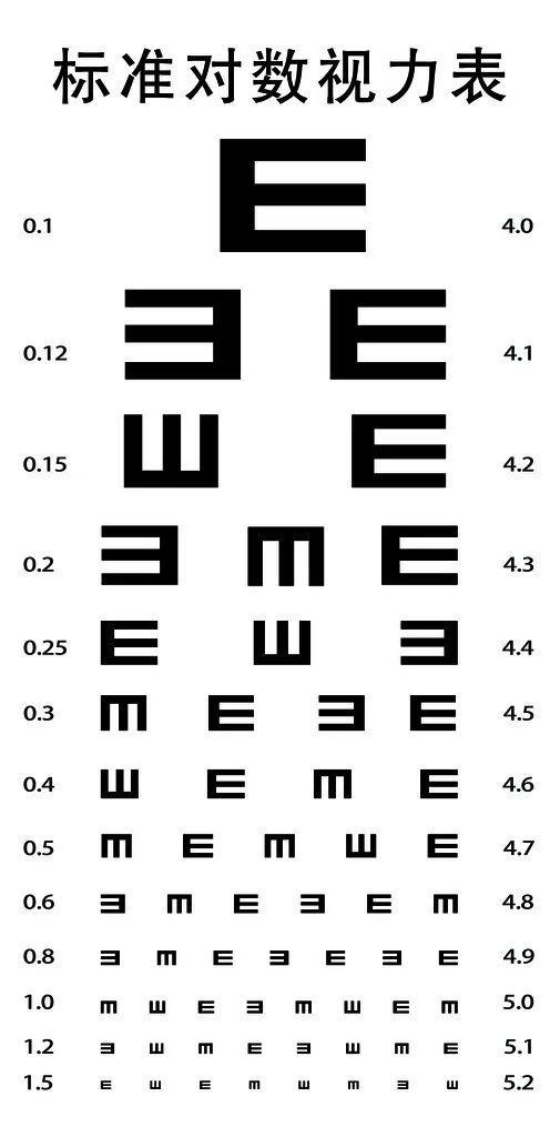 现在的视力表不再采用0.1-1.5这样的小数记录方法,我们经常可以听到视力5.0、4.0之类,这种新的方法叫做标准对数记录法。