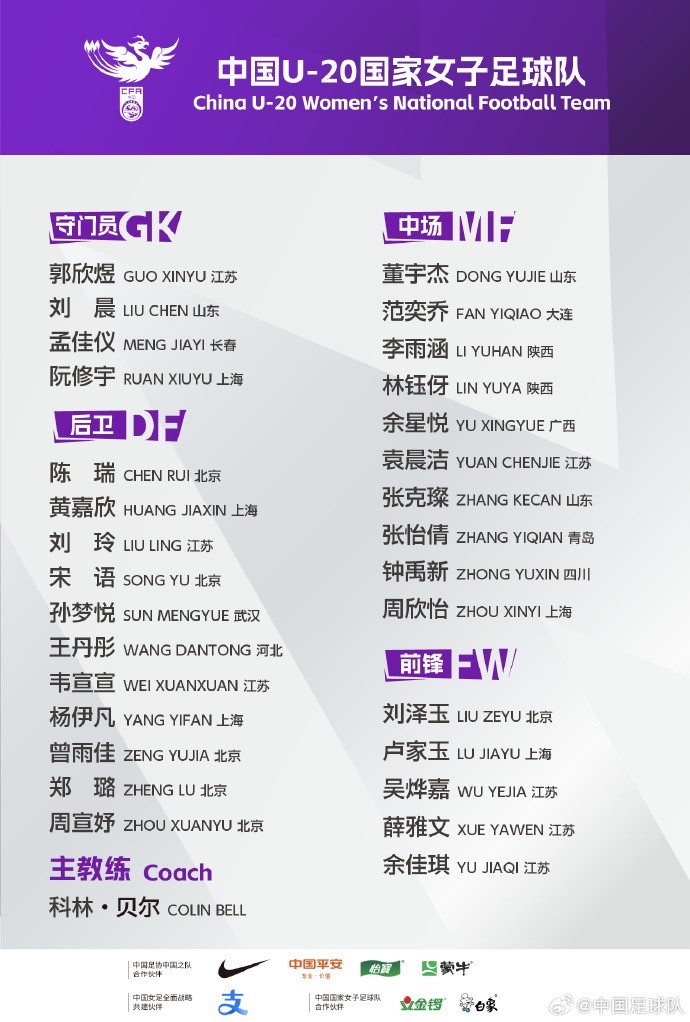 北京时间10月8日,中国足协公布了新一期U20女足集训的名单,这也是新帅科林-贝尔上任后的第一次集训。