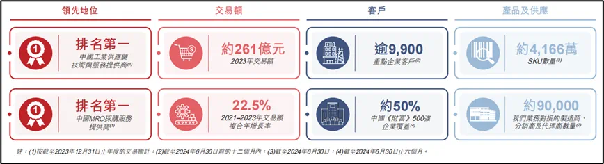 根据灼识咨询的资料显示,按交易额计算,京东工业2023年在国内MRO采购服务市场排名第一(规模为第二名的2倍),亦是中国工业供应链技术与服务市场最大的服务提供商,份额约达4.1%。