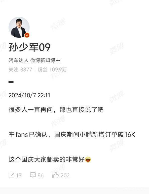 根据汽车博主透露的数据,国庆期间小鹏汽车新增订单突破1.6万。其中,MONA 03和G6为主力车型。