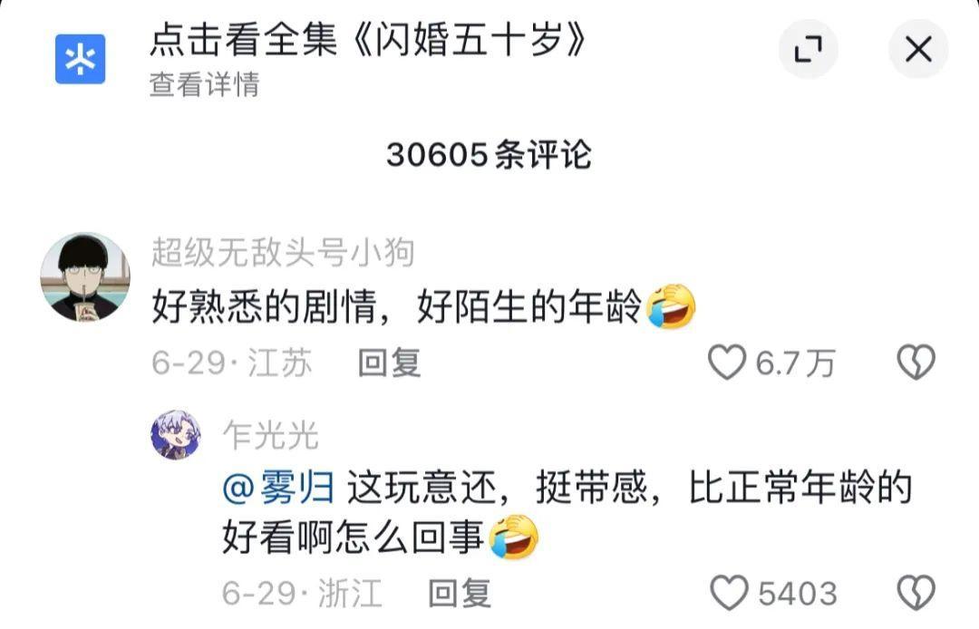 而类似题材的跟风之作《闪婚五十岁》同样也获得了不菲的成绩。