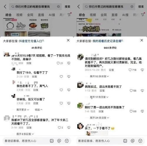 在某音,解锁一部68元的短剧需要氪金大概45元;而全年免费的会员套餐则需要365元。