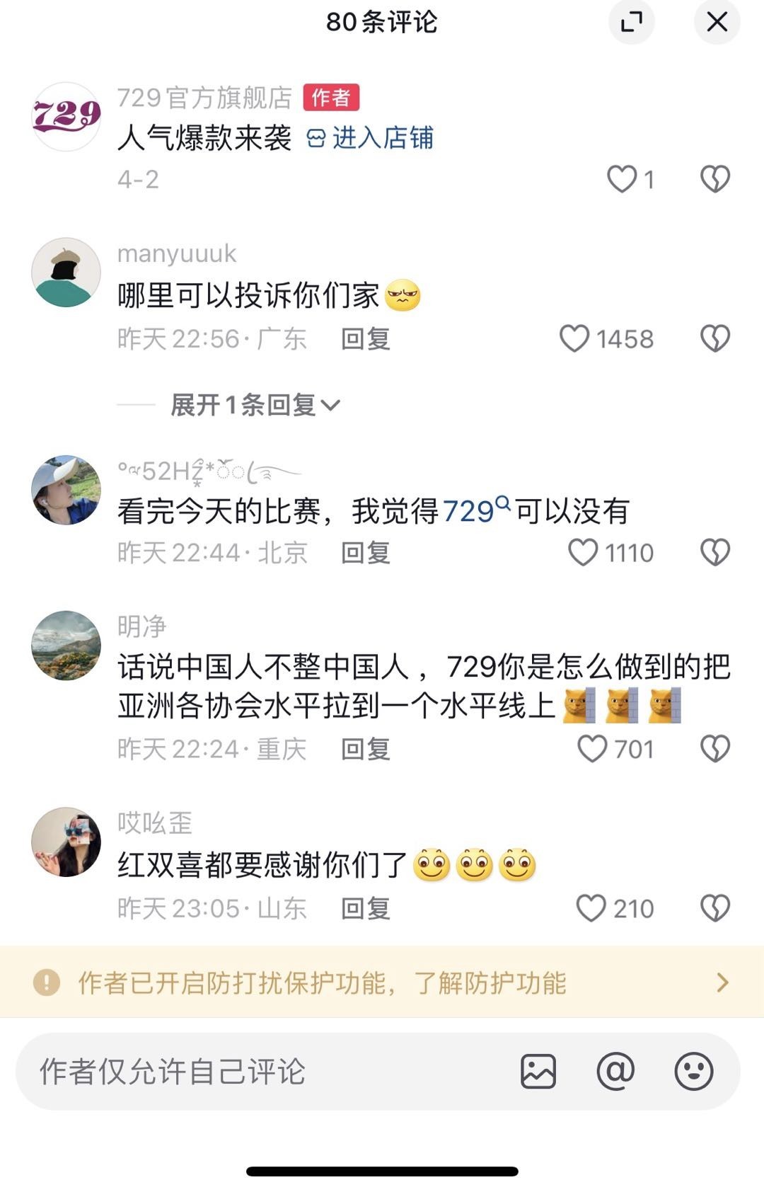 今日,“729官方旗舰店”账号开启了防打扰保护功能,评论区设置成仅允许自己评论,并下架了店铺中所有的商品。