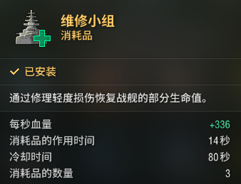 是时候来看看斯维亚那丰富多彩的消耗品了,这也是这艘维京小艇在顶级房辗转腾挪的资本。维修小组算是一个标配产物,不同的是斯维亚的能稍微回复一些核心区伤害,非核心回复50%核心回复33%的数值算不上多优秀,但总比那些数值更差的要好上一些。