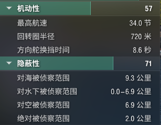 比起这些小聪明,小舰体在机动和隐蔽上的优势才是重点。举例来说,斯维亚裸航速34节,配合8.59秒的转舵时间以及720米转舵半径,整体来说已相当灵活,再结合其8.21的推重比,手感方面肯定要比那些重巡和大巡要强上不少。即便与更灵活的超轻巡相比还有一定差距,斯维亚还有消耗品可以超级强化,完全不虚。