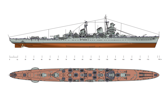 从体型来看,斯维亚可以说是目前X级最小的巡洋舰之一,长度仅有185.93米,宽17.14米,所以游戏里也只给了10961吨的排水量。这个尺寸有多小呢?大概和V级S系巡洋舰基洛夫属于相似体型。这么小的体型来到X级,第一问题就是血量贫瘠,斯维亚裸血量仅有33600,少的可怕。就算加血拉上,也只有38100,可谓是吹弹可破,极易暴毙。