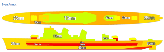 尽管体型与超轻巡类似,但斯维亚的外壳装甲非常不错,并不会被356毫米及更小口径的主炮AP弹碾压,在面对不少大巡时,斯维亚也更有底气
