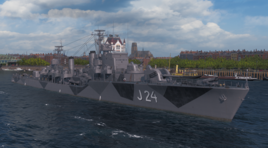 鱼雷方面,斯维亚在舰体中部的左右两舷各装备了一组四联装鱼雷发射管,发射跟东约特兰一样的13.5千米射程鱼雷。86节的航速非常给力,可惜数量稀少,单侧只有一组,不过好消息是装填时间较快。但也要注意,E系雷伤普遍偏低,斯维亚的鱼雷就算单侧4根全命中也造成不了4w+的伤害。真要用这个鱼雷骑脸,请一定要选择残血目标,不要盲目自信。如果只是拿来雷击摸奖,打进水补伤害,那就轻松多了。