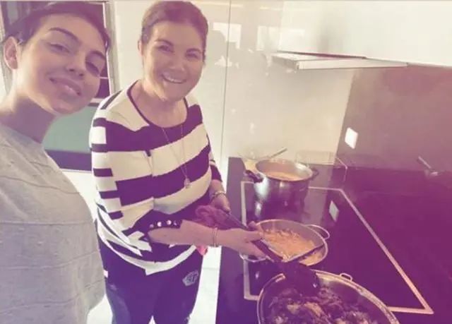 但乔治娜很会讨准婆婆的欢心,她会陪着婆婆唠嗑,跟着婆婆学做 C 罗爱吃的东西,婆婆住院了她把工作一放就去亲自照顾她,盛装出席婆婆的生日宴并且忙前忙后……