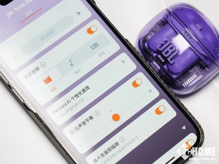 针对于追求个性化的用户,JBL晶噪豆二代提供了PERSONI-FI 3.0个性化音效的选项,通过几个环节的测试,便可获得针对不同听力能力的定制化音频曲线,让听音更加舒适。