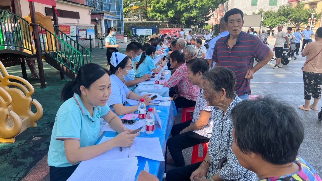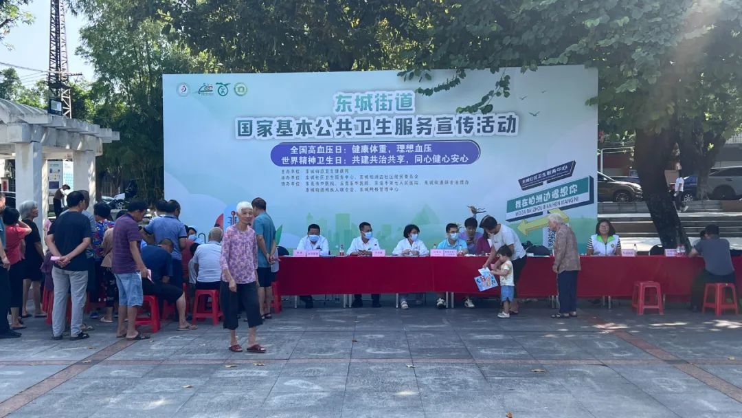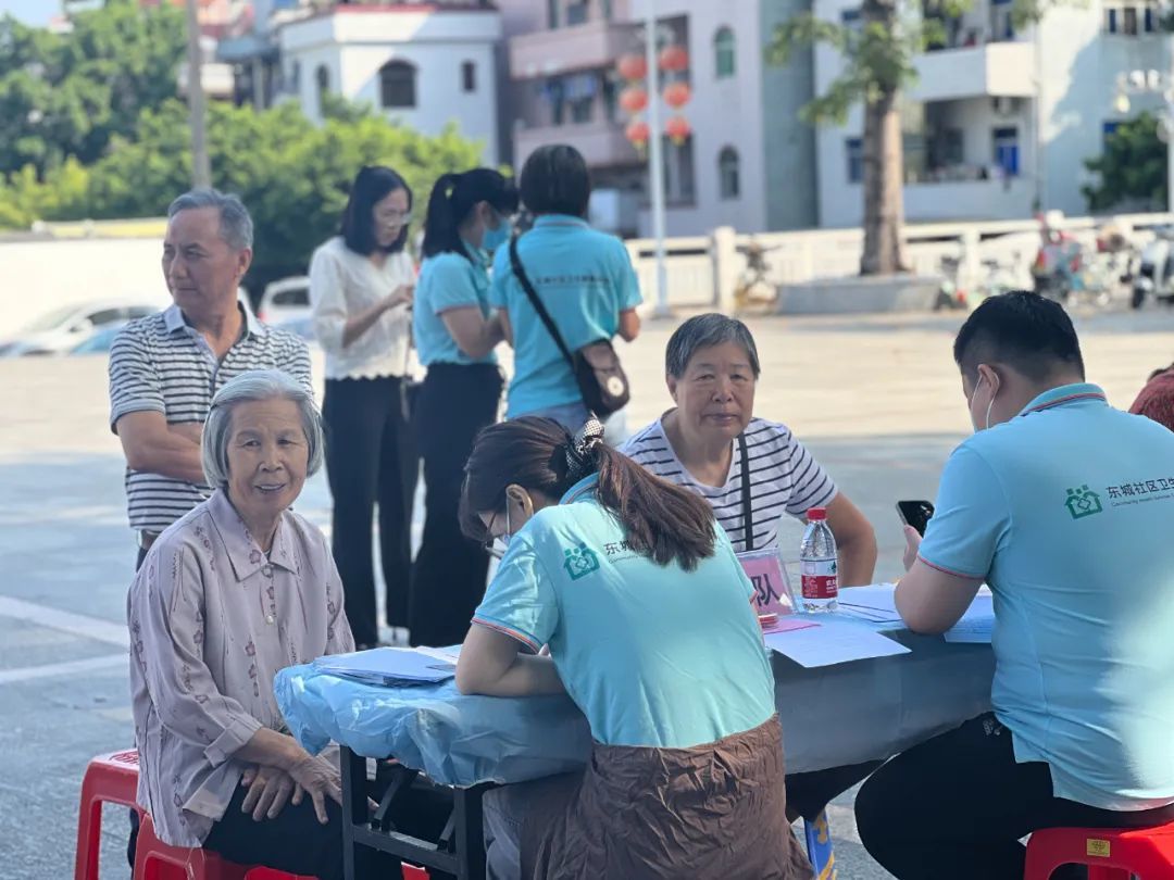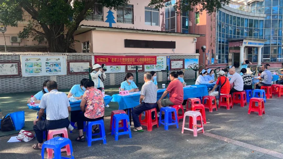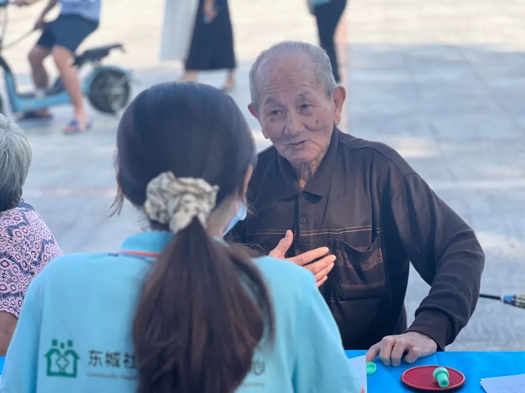 一大早,在柏洲边社区综合服务中心门前,东城街道社卫工作人员现场为老年人提供心理健康义诊、疾病义诊、健康知识普及等,并通过调查问卷的方式将存在的问题记录下来。