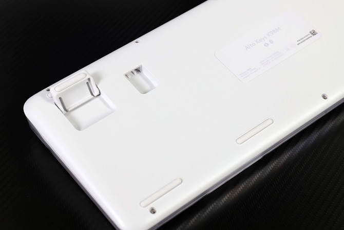 机身底部设计简洁,防滑脚垫与一段式撑脚确保了键盘的稳定性与倾角可调性。接收器收纳槽的加入,也体现了罗技在设计上的周到考虑。