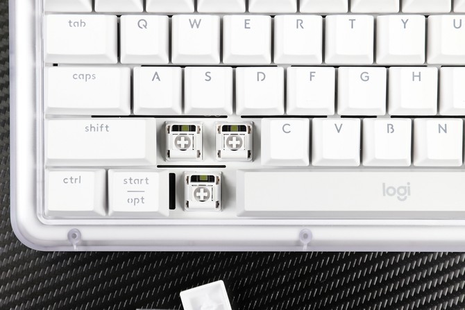 罗技琥珀系列K98M键盘搭载品牌独特设计大理石轴,并赋予了键盘独特的Hi-Fi丝滑石子音,每次敲击都流畅悦耳。键盘还支持全键热插拔技术,用户还可以依据工作或游戏的具体需求,自由更换轴体和键帽,增强客制化的使用体验。