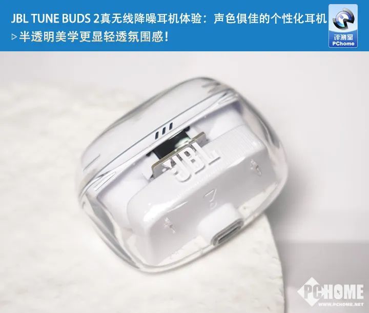 之前笔者就比较喜欢JBL琉璃豆一代的半透明设计,这次JBL琉璃豆二代在此基础上再升级,半透明的充电盒设计更具个性化,辨识度更高,能带来神秘而独特的的视觉感。
