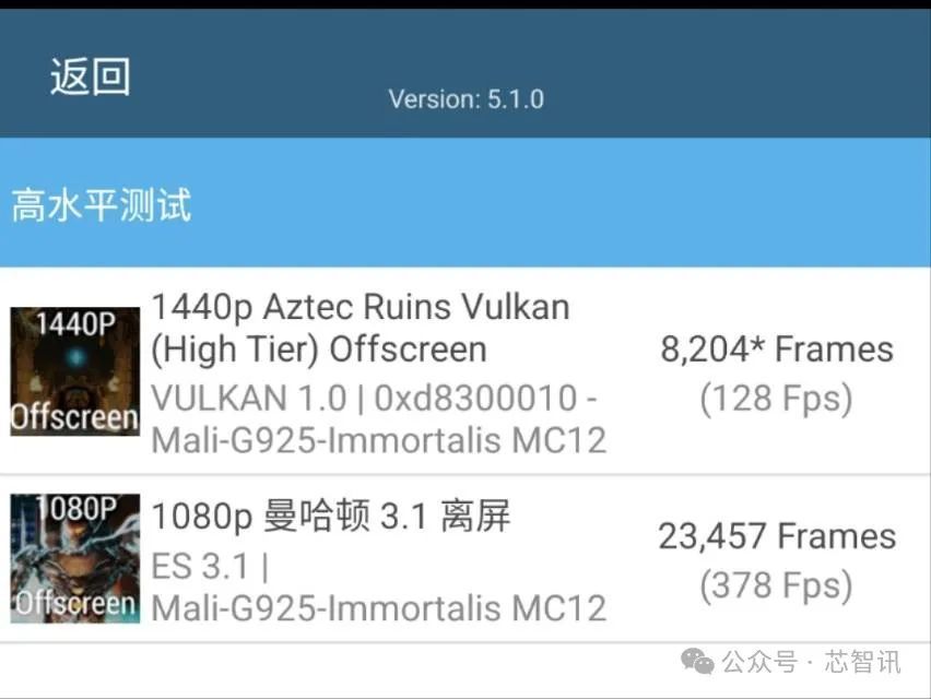 在GFXBench 1440P Aztec Ruins Vulkan(High Tier)离屏测试中,成绩为128FPS;在1080p曼哈顿3.1离屏测试成绩则高达379FPS。