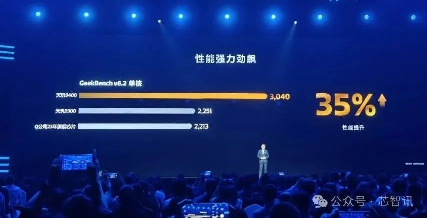 联发科表示,相比上代的天玑9300,天玑9400可以实现100%的生成式性能提升,80%的大模型加速性能提升,35%的能效提升。