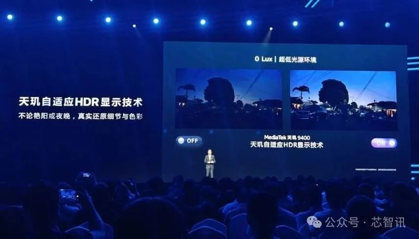 在显示效果方面,天玑9400集成了 MediaTek MiraVision 1090 移动显示处理器,在前代支持180Hz WQHD和120Hz 4K画质显示基础上,加入了天玑自适应HDR显示技术,可以根据环境光自适应HDR显示效果。