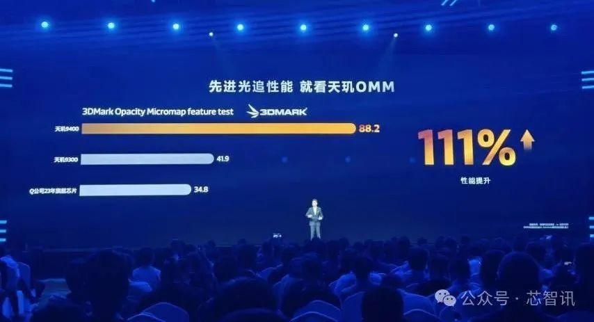 在3DMark最新的光线追踪性能测试Opacity Micromap Feature test中,天玑9400的光追效果得分达到了88.2分,相比天玑9300提升了111%。