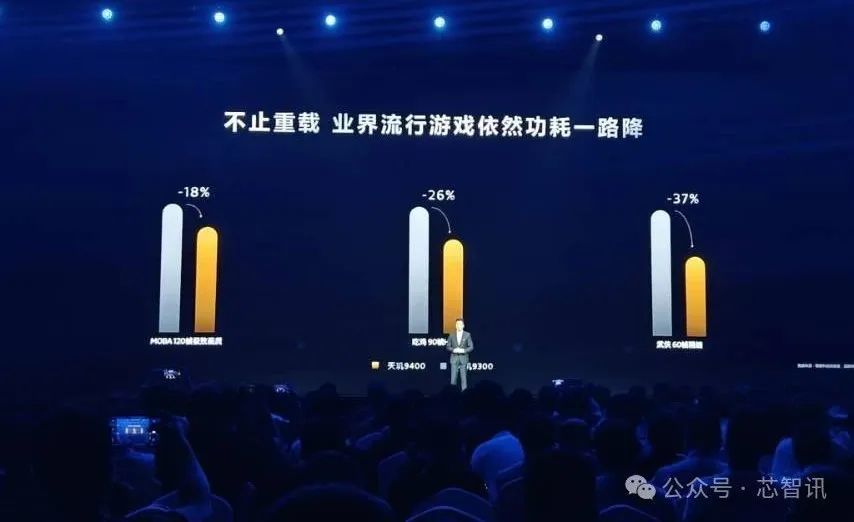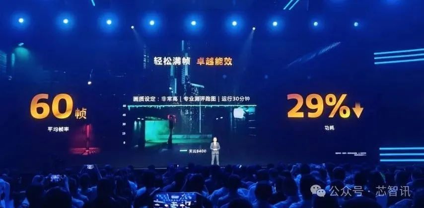 在重载游戏60FPS满帧运行的状态下,天玑9400的功耗也相比天玑9300降低了29%。