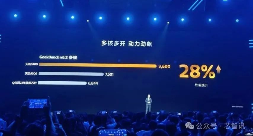 在Geekbench 6 测试中,天玑9400的单核成绩为2924分,多核成绩为9197分。作为对比,去年天玑9300样机的实测单核得分为2209分,多核得分为7587分。即天玑9400的单核和多核性能分别增长了32.4%和21.2%。