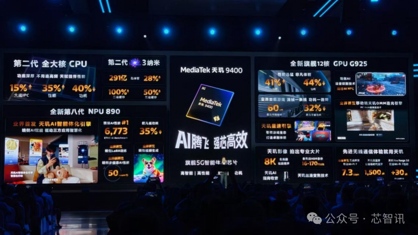 此次联发科发布的天玑9400则号称是首款“智能体AI芯片”,可助力AI手机加速向“智能体”进化。