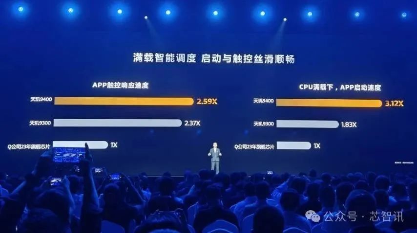 根据联发科公布的数据显示,在第二代全大核+天玑调度引擎的加持之下,天玑9400即使在CPU满载情况下,对于APP启动时间平均小于100ms,比天玑9300快了约70%,比2023年高通骁龙旗舰快了3.12倍。在APP触控响应速度上,天玑9400也比天玑9300快了约9%,比2023年高通骁龙旗舰快了2.59倍。