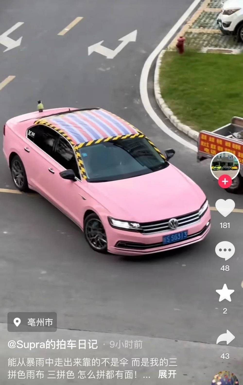 看到上百万的豪车配雨篷布和胶带,事情逐渐火了。