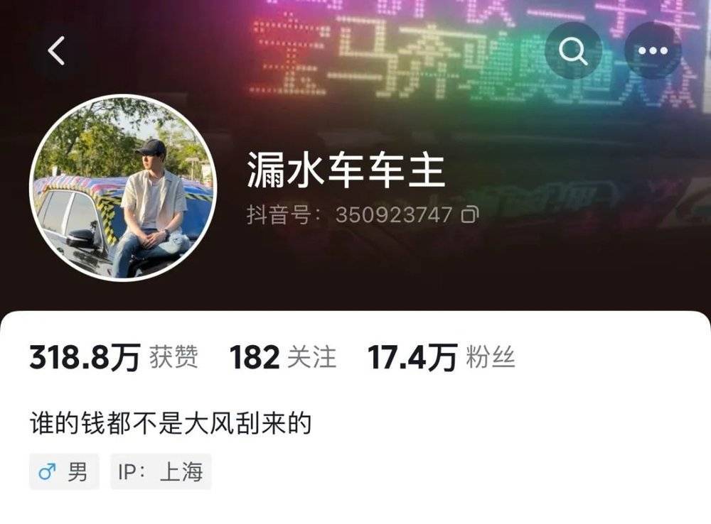 而这位车主,抖音ID就叫:“漏水车车主”。