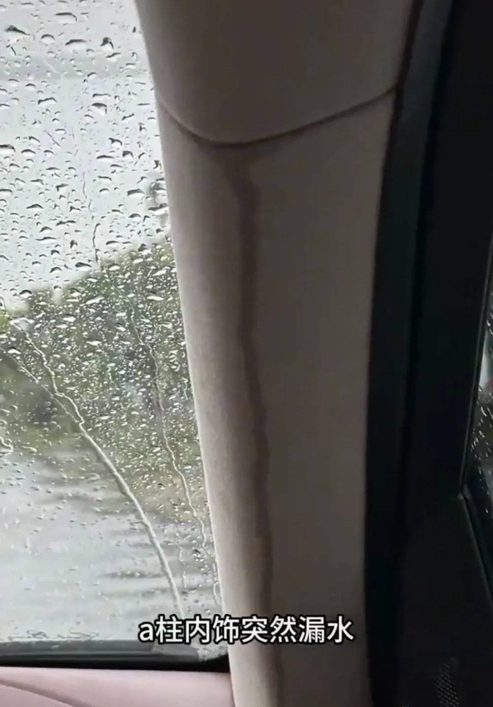 结果就在返程路上,A柱甚至开始漏水了,215万的新车里,冷冷的冰雨胡乱淌。