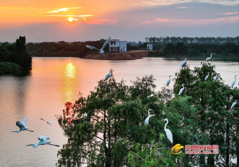 金秋十月,秋高气爽。南昌县塔城乡湖陂村的水杉林中,不时有鹭鸟振翅飞翔,吸引游人驻足观赏,拍照留念。优质的生态环境让这里不仅成了候鸟的乐园,也成为了市民休闲游玩的好去处。(洪观新闻记者 成奔 摄)