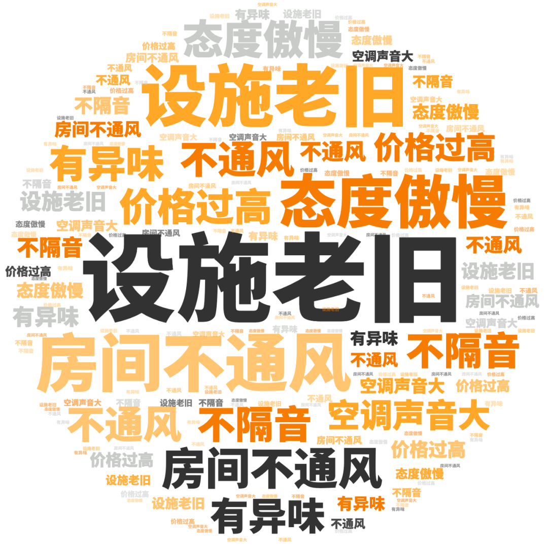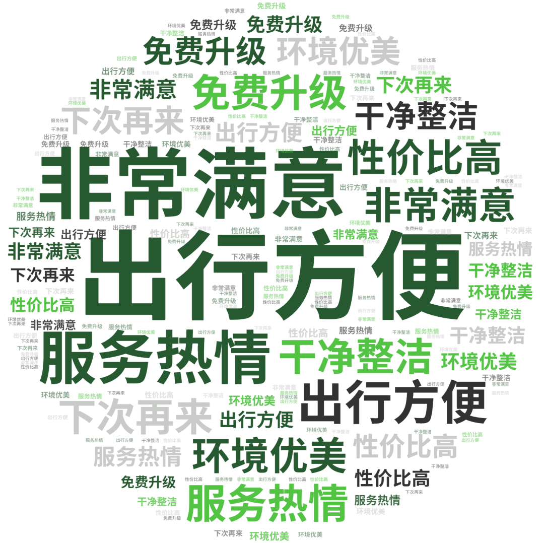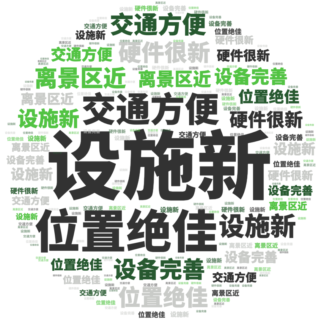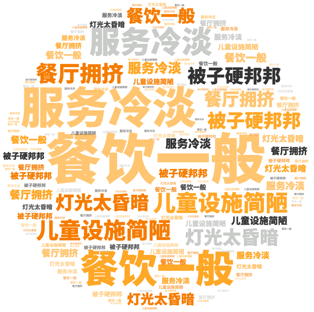 点评指数:点评指数平均得分为127.58,环比上月小幅回落,本月未有品牌拿到300分,好评维度平均是差评维度的1.6倍。好评关键词主要是服务贴心、水果新鲜、床品舒服等,差评主要集中在服务怠慢、卫生差、有异味等问题。