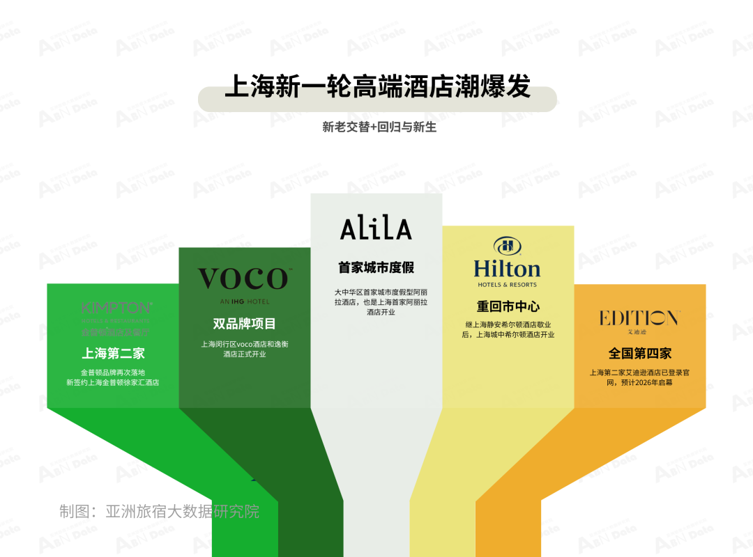 此外在月内,凯悦酒店集团旗下的阿丽拉在上海正式启幕,该酒店是大中华区首家城市度假型阿丽拉酒店,也是上海首家阿丽拉酒店。同时,希尔顿集团旗舰品牌希尔顿酒店重返上海市中心,是继上海静安希尔顿酒店歇业后,上海城中希尔顿酒店于9月20日正式启幕,酒店坐落于上海市静安区与长宁区交界的繁华地段,踞于延安西路的核心段。而就在上月,上海第二家艾迪逊酒店已登录官网,预计2026年启幕。该酒店为全国第四家、上海地区第二家艾迪逊酒店。