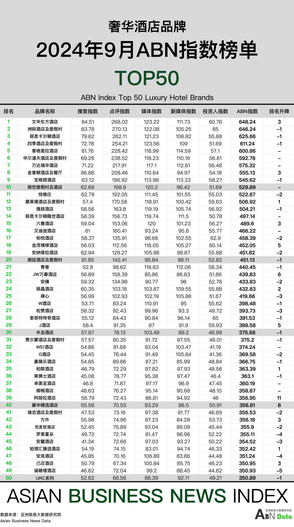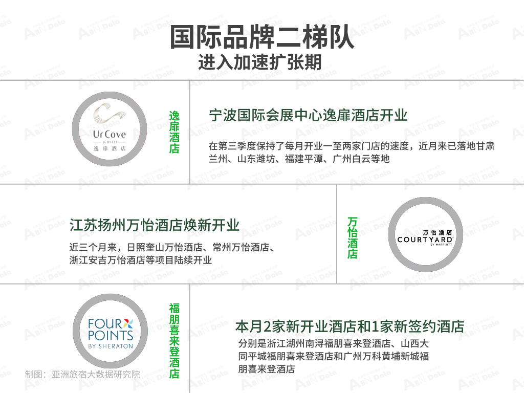 据亚洲旅宿大数据研究院(ABNData)监测品牌统计,9月新开业酒店277家,环比涨幅11.24%。