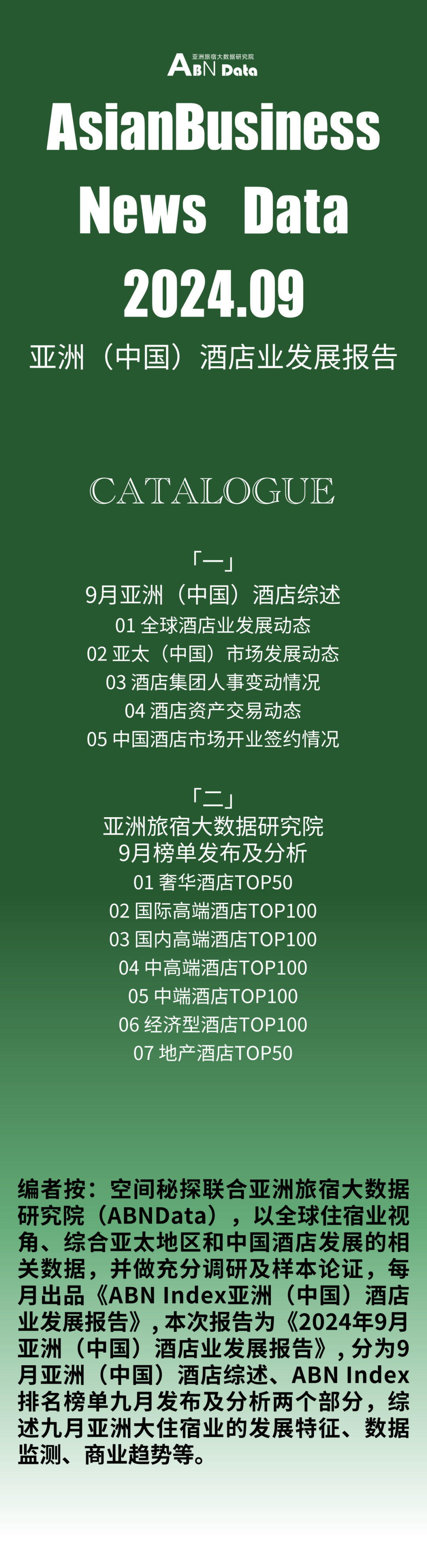 投资人指数:9月,中端酒店投资加盟继续保持高热度,节假日头部品牌盈利水平突出,投资者信心较强。