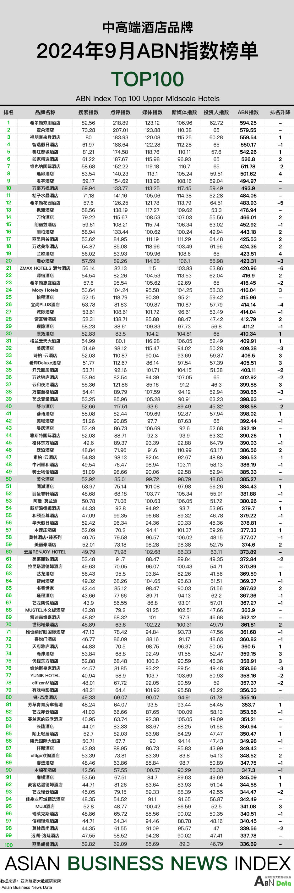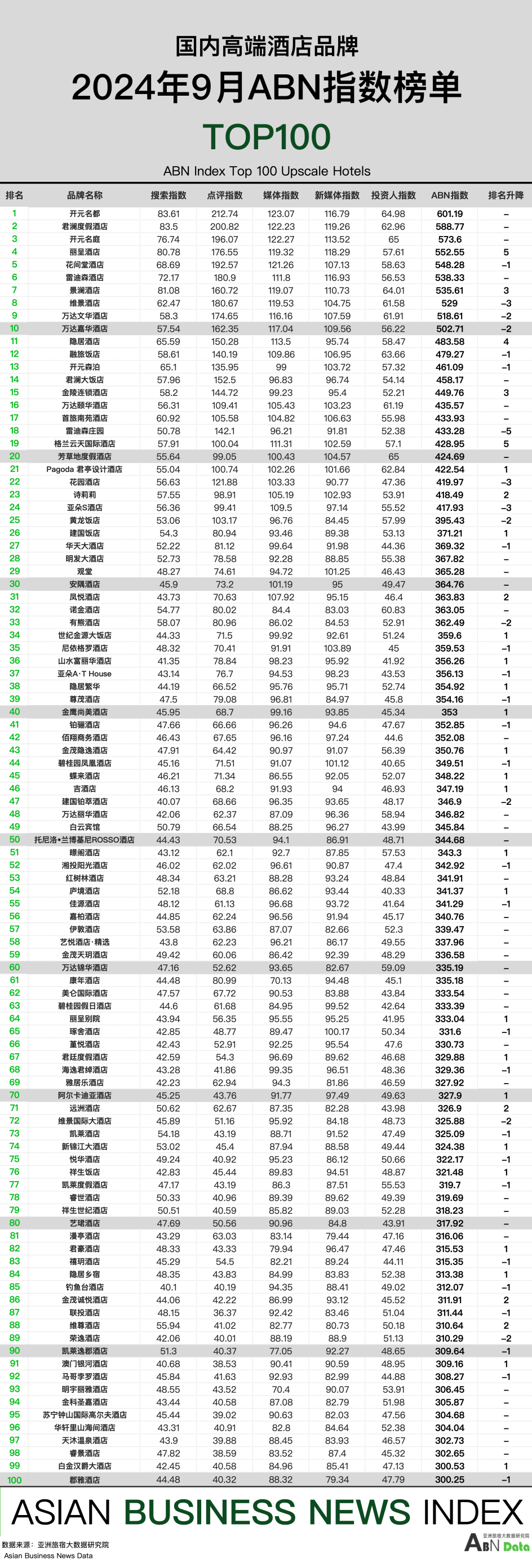 中高端酒店100强榜单