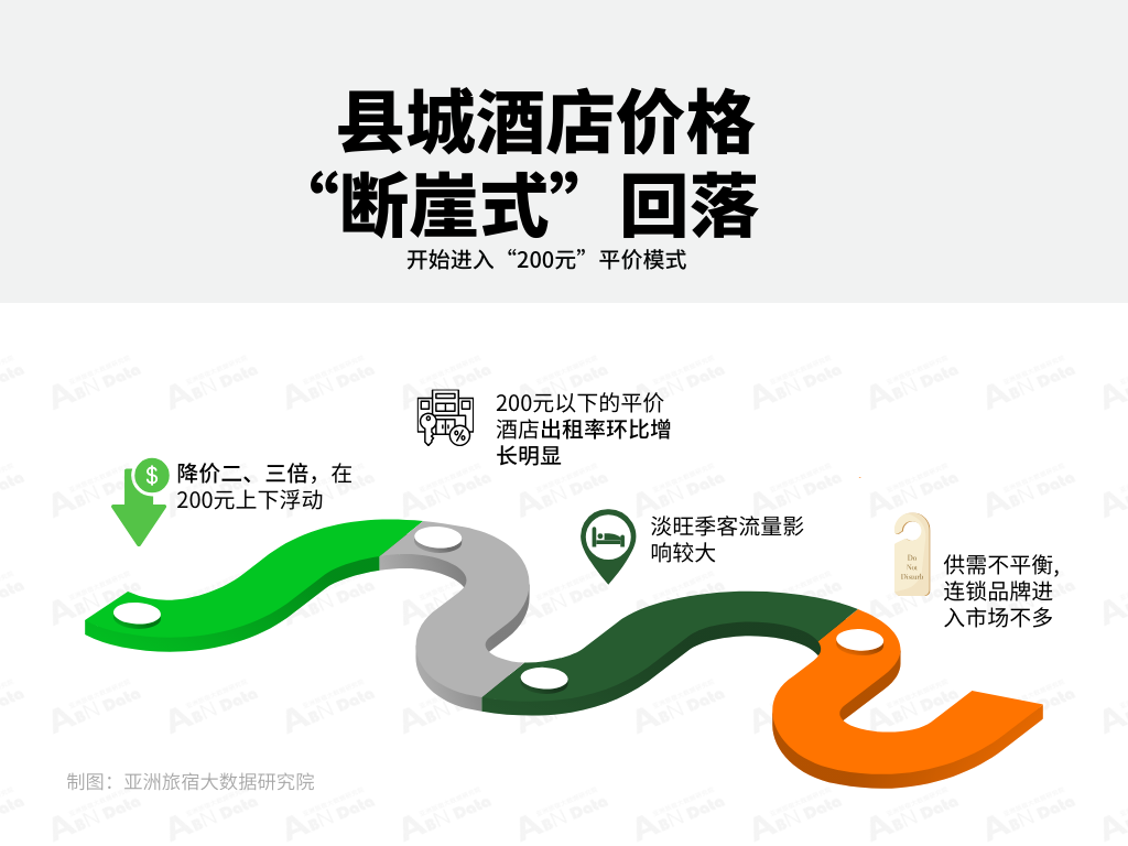 县城酒店价格断崖式下跌 | 根据亚洲旅宿大数据研究院的监测,县城酒店价格呈“断崖式”回落,降价二、三倍,在200元上下浮动,开始进入“200元”平价模式。相较于暑期热门小城酒店的环比113%的涨幅,暑期热度逐渐降温,如六盘水、荔波、大同古镇等避暑城市的多家酒店低至150元/晚。