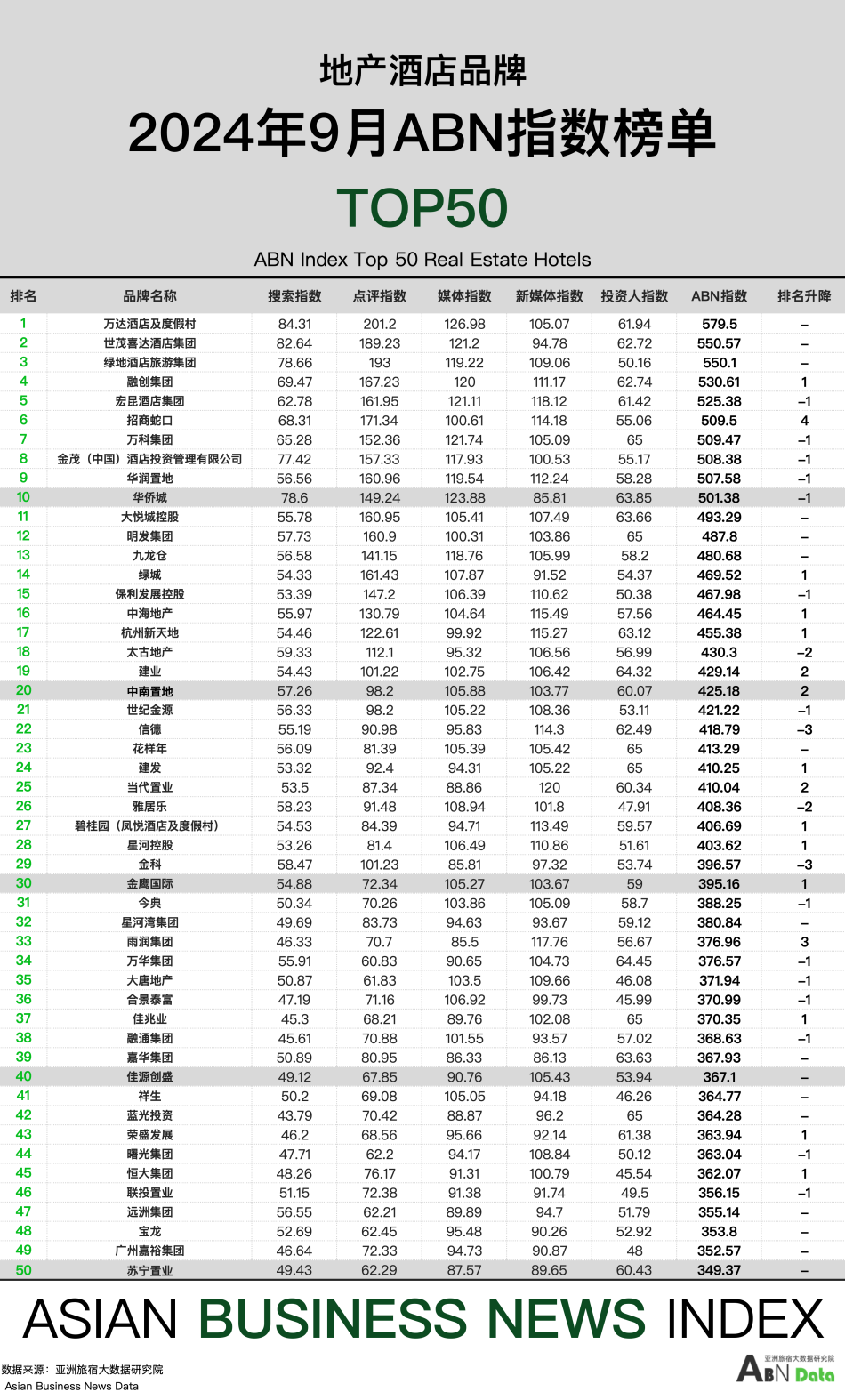 地产酒店50强榜单
