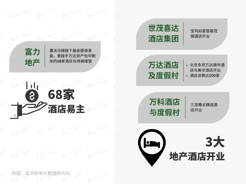 其二是万达酒店及度假村旗下北京东坝万达锦华酒店与美华酒店开业,目前万达旗下酒店总数达200家。除此之外,筹建及待开业酒店370余家,覆盖全球200余座城市。其三是三亚瞻云精选酒店焕新启幕,该项目是万科酒店与度假村在海南三亚的首家品牌酒店。