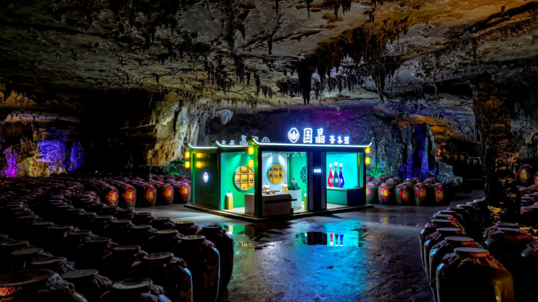 在创新工艺的加持下,国晶·茶本酒选定中国国家地理标志产品凌云白毫茶,作为酿造茶本酒的原料;又以凌云岑王老山天然活泉,作为高品质水源供应;开发了近3万平米的喀斯特地貌天然如来洞,打通从选材、生产到储藏的完整链条。