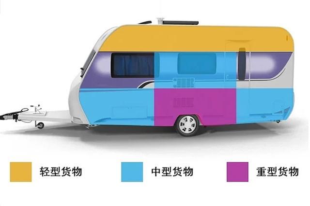 而当我们调整好载重后,还有一个重点问题需要去关注,那就是房车装载的配重问题。对于普通消费者接触最多的单轴房车来说,我们要尽可能地把重物靠近车轴放置,并将较轻的物品均匀放在车厢的两侧,让车辆在行驶中拥有更强的稳定性,以此来避免“死亡摇摆”的发生。