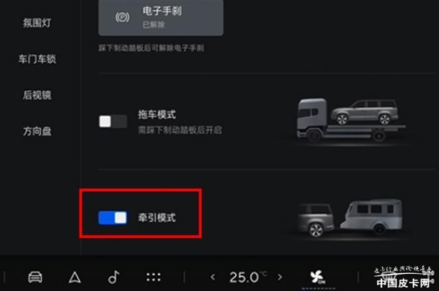 除了在拖挂房车中加入更多的电子系统外,现如今有不少车企在拥有拖挂资质的产品中也加入了拖挂模式。其本质上是驾驶模式的一种,通过车载传感器及相关算法,实时评估拖车的行进状态,当传感器探测到拖车有摇摆倾向时,可及时调整发动机动力输出和四轮制动力,让车辆保持平稳。