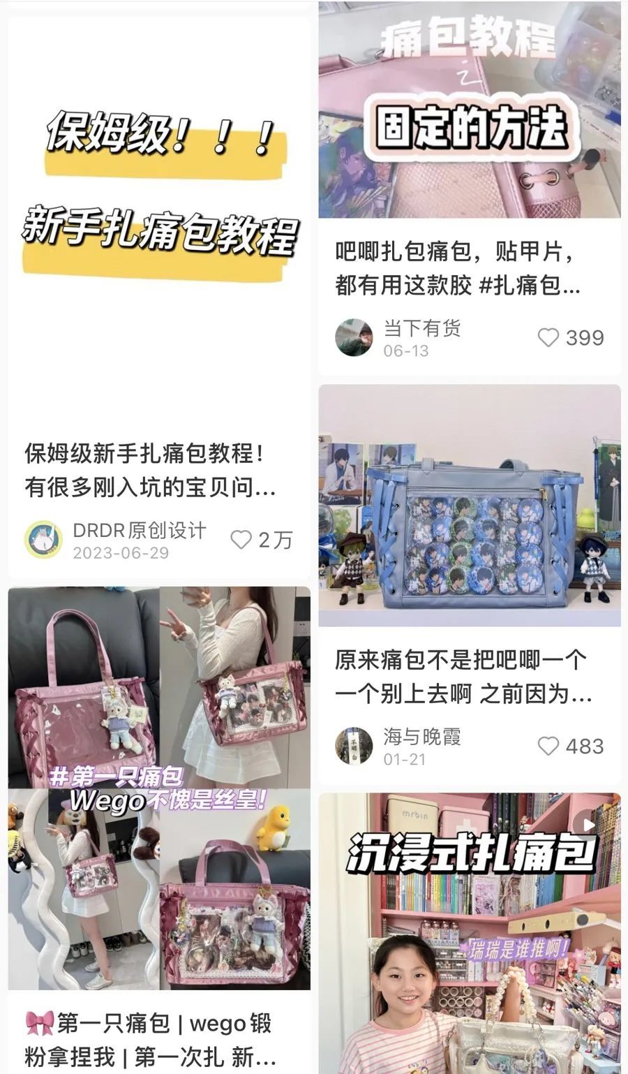 排队购买WEGO痛包的粉丝群体中,不少人都提到这款包的优点是“百搭”。在小红书等社交媒体上,“扎痛包”的攻略比比皆是,许多二次元粉丝会分享如何打造一个完美的痛包。