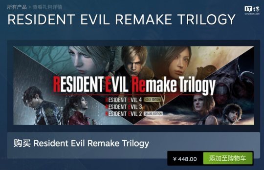 卡普空现已在Steam平台上架《生化危机:重制版 三部曲(RESIDENT EVIL REMAKE TRILOGY)》,主要收录了重制版的《生化危机》2/3/4版本,国区售价为448元。